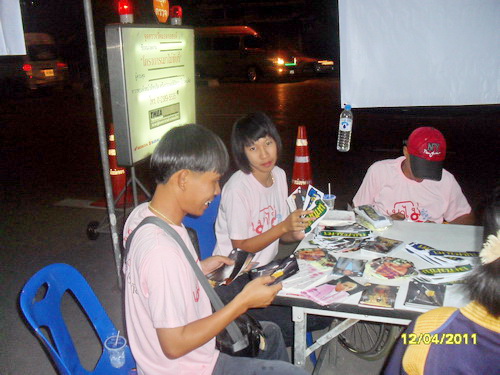 สมาชิกเครือข่ายเหยื่อเมาแล้วขับ ในมูลนิธิเมาไม่ขับ จ.สมุทรปราการ รณรงค์ "เมาไม่ขับ" “สงกรานต์นี้ปลอดเหล้า ทำได้ด้วยตัวคุณ” ขอนะ โดยแจกสื่อ สติ๊กเกอร์ แผ่นพับ ผ้าเย็น ให้กับผู้ใช้รถใช้ถนน ณ หน่วยบริการประชาชน สภ.เมือง เมื่อวันที่ 12 เมษายน 2554 ที่ผ่านมา