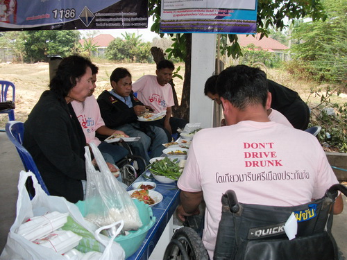 สมาชิกศูนย์ประสานงานเครือข่ายเหยื่อเมาแล้วขับ ในมูลนิธิเมาไม่ขับ จ.ศรีสะเกษ รณรงค์ "เมาไม่ขับ" “สงกรานต์นี้ปลอดเหล้า ทำได้ด้วยตัวคุณ” ขอนะ โดยแจกสื่อ สติ๊กเกอร์ แผ่นพับ ผ้าเย็น ให้กับผู้ใช้รถใช้ถนน ณ จุดตรวจ อ.อุทุมพรพิสัย เมื่อวันที่ 14 เมษายน 2554 ที่ผ่านมา