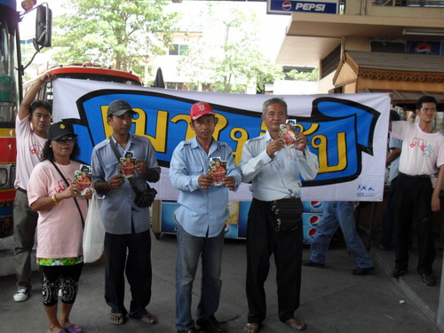 สมาชิกศูนย์ประสานงานเครือข่ายเหยื่อเมาแล้วขับ จังหวัดสระบุรี รณรงค์ "เมาไม่ขับ" “สงกรานต์นี้ปลอดเหล้า ทำได้ด้วยตัวคุณ” ขอนะ โดยแจกสื่อ สติ๊กเกอร์ แผ่นพับ ผ้าเย็น ให้กับผู้ใช้รถใช้ถนน ณ สถานีขนส่งจังหวัด เมื่อวันที่ 13 เมษายน 2554 ที่ผ่านมา