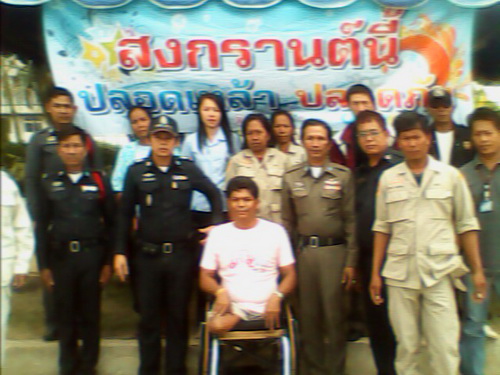 สมาชิกศูนย์ประสานงานเครือข่ายเหยื่อเมาแล้วขับ ในมูลนิธิเมาไม่ขับ จ.บุรีรัมย์ รณรงค์ "เมาไม่ขับ" “สงกรานต์นี้ปลอดเหล้า ทำได้ด้วยตัวคุณ” ขอนะ โดยแจกสื่อ สติ๊กเกอร์ แผ่นพับ ผ้าเย็น ให้กับผู้ใช้รถใช้ถนน ณ จุดตรวจ สภ.เมือง เมื่อวันที่ 13 เมษายน 2554 ที่ผ่านมา