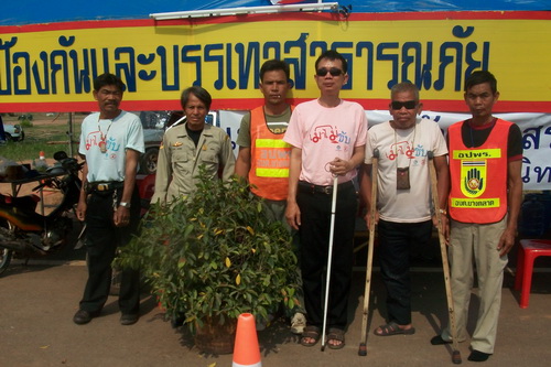 สมาชิกศูนย์ประสานงานเครือข่ายเหยื่อเมาแล้วขับ ในมูลนิธิเมาไม่ขับ จ.กาฬสินธุ์ รณรงค์ "เมาไม่ขับ" “สงกรานต์นี้ปลอดเหล้า ทำได้ด้วยตัวคุณ” ขอนะ โดยแจกสื่อ สติ๊กเกอร์ แผ่นพับ ผ้าเย็น ให้กับผู้ใช้รถใช้ถนน ณ ศูนย์ป้องกันและลดอุบัติเหตุฯ จ.กาฬสินธุ์ เมื่อวันที่ 14 เมษายน 2554 ที่ผ่านมา