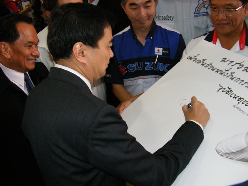 นายอภิสิทธิ์ เวชชาชีวะ นายกรัฐมนตรี กล่าวระหว่างการเป็นประธาน เปิดโครงการปีแห่งการรณรงค์ ส่งเสริมการสวมหมวกนิรภัย 100 % ว่า อุบัติเหตุทางถนนเป็นปัญหาใหญ่ที่เกิดความสูญเสียของประชาชน ซึ่งภายในปี 2563 รัฐบาลมีเป้าหมายที่ลดอุบัติเหตุให้ได้ครึ่งหนึ่ง หรือให้มีผู้เสียชีวิตไม่เกิน 10 ราย ต่อประชากร 100,000 ราย ขณะที่ขอให้ทุกฝ่ายช่วยผลักดันการบังคับใช้กฎหมายการสวมหมวกนิรภัยให้ เข้มงวด พร้อมขอให้เจ้าหน้าที่ของรัฐเป็นตัวอย่างในการสวมหมวกนิรภัย ตลอดจนได้ร่วมมือกับภาคเอกชน ผู้ประกอบการ และสถานศึกษา ร่วมรณรงค์ให้นักศึกษา นักเรียน และลูกจ้าง ให้ความสำคัญกับการสวมหมวกนิรภัย พร้อมกันนี้ รัฐบาลจะพัฒนามาตรฐานของหมวกนิรภัย ทั้งนี้ นายกรัฐมนตรี พร้อม นายสุเทพ เทือกสุบรรณ รองนายกรัฐมนตรี ด้านความมั่นคง นายโสภณ ซารัมย์ รมว.คมนาคม และ พล.ต.อ.วิเชียร พจน์โพธิ์ศรี ผู้บัญชาการตำรวจแห่งชาติ ร่วมกันปล่อยขบวนรถจักรยานยนต์ ณ สโมสรกองทัพบ เมื่อวันที่ 27 มกราคม 2554 ที่ผ่านมา