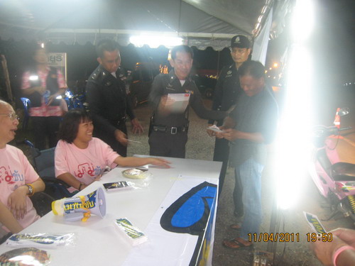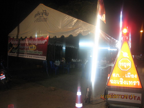 สมาชิกศูนย์ประสานงานเครือข่ายเหยื่อเมาแล้วขับ ในมูลนิธิเมาไม่ขับ จังหวัดฉะเชิงเทรา จำนวน 4 คน พร้อมผู้ช่วย ออกรณรงค์ "เมาไม่ขับ" “สงกรานต์นี้ปลอดเหล้า ทำได้ด้วยตัวคุณ” ขอนะ โดยแจกสื่อ สติ๊กเกอร์ แผ่นพับ ผ้าเย็น ให้กับชาวบ้าน ร่วมกับตำรวจที่ด่านตรวจ ต.บางตีนเป็ด อ.เมือง ทางหลวงหมายเลข 304 ฉะเชิงเทรา-กบินทร์บุรี ก.ม.ที่ 5-6 วันที่ 11 เมษายน 2554 ที่ผ่านมา