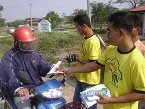 สมาชิกศูนย์ประสานงานเครือข่ายเหยื่อเมาแล้วขับ ในมูลนิธิเมาไม่ขับจังหวัดเชียงราย แจกสื่อรณรงค์เพื่อลดอุบัติเหตุในช่วงเทศกาลปีใหม่ โครงการปีใหม่ไปให้ถึง (ARRIVE ALIVE) ณ จุดตรวจ อ.เทิง ในวันที่ 26 ธันวาคม 2550 ถึง 3 มกราคม 2551 ที่ผ่านมา