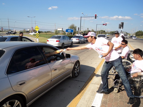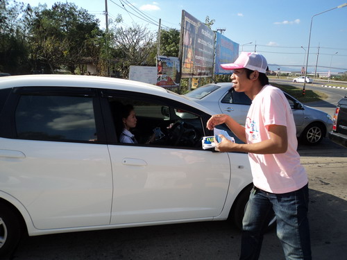 สมาชิกศูนย์ประสานงานเครือข่ายเหยื่อเมาแล้วขับ ในมูลนิธิเมาไม่ขับ จังหวัดแพร่ ร่วมกับ เจ้าหน้าที่สาธารณสุข แจกสื่อ สติ๊กเกอร์ รณรงค์เมาไม่ขับ "ปีใหม่ตายเป็นศูนย์" ให้กับ ประชาชน ผู้ใช้รถใช้ถนน ณ แยกกอเปา เมื่อวันที่ 31 ธันวาคม 2554 ที่ผ่านมา