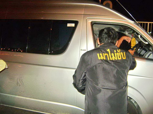 สมาชิกศูนย์ประสานงานเครือข่ายเหยื่อเมาแล้วขับ ในมูลนิธิเมาไม่ขับ จังหวัดเชียงใหม่ แจกสื่อ สติ๊กเกอร์ รณรงค์เมาไม่ขับ "ปีใหม่ตายเป็นศูนย์" ให้กับ ประชาชน ณ ถนนทุ่งโฮเต็ล(หน้าองค์การโทรศัพท์) เมื่อวันที่ 1 มกราคม 2555 ที่ผ่านมา