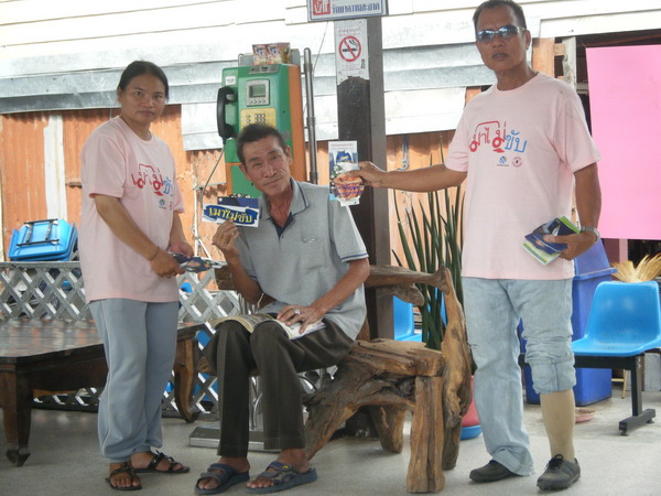 สมาชิกศูนย์ประสานงานเครือข่ายเหยื่อเมาแล้วขับ ในมูลนิธิเมาไม่ขับ จ.สุรินทร์ รณรงค์ "เมาไม่ขับ" แจกสื่อสติ๊กเกอร์ แผ่นพับ ให้ประชาชน ณ สถานีรถไฟสำโรงทาบ เมื่อวันที่ 27-28 กุมภาพันธ์ 2555 ที่ผ่านมา