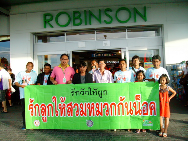สมาชิกเครือข่ายเหยื่อเมาแล้วขับ ในมูลนิธิเมาไม่ขับ จ.ตรัง รณรงค์ เมาไม่ขับ สงกรานต์ปลอดภัย ตายเป็นศูนย์ แจกสื่อ สติ๊กเกอร์ แผ่นพับ ให้ประชาชน ณ ROBINSON เมื่อวันที่ 13 เมษายน 2555 ที่ผ่านมา