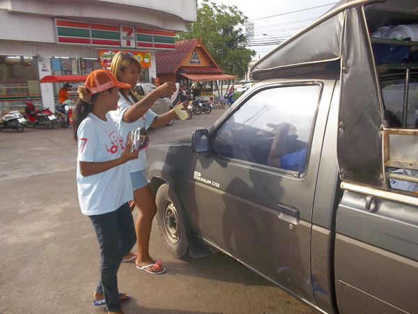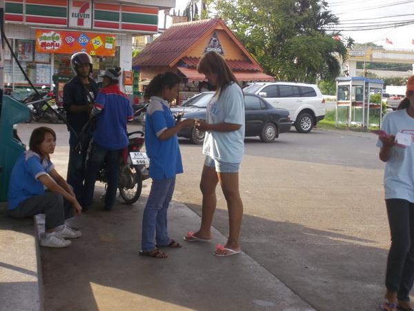 สมาชิกศูนย์ประสานงานเครือข่ายเหยื่อเมาแล้วขับ ในมูลนิธิเมาไม่ขับ จังหวัดตราด รณรงค์ เมาไม่ขับ สงกรานต์ปลอดภัย ตายเป็นศูนย์ แจกสื่อ สติ๊กเกอร์ แผ่นพับ ให้ประชาชนผู้ใช้รถใช้ถนน ณ ปั้มน้ำมัน ปตท. หนองบัว เมื่อวันที่ 15 เมษายน 2555 ที่ผ่านมา