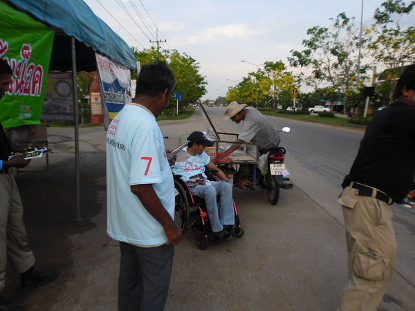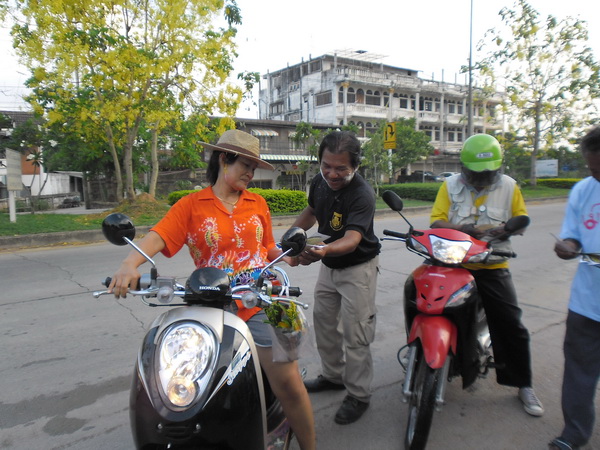 สมาชิกศูนย์ประสานงานเครือข่ายเหยื่อเมาแล้วขับ ในมูลนิธิเมาไม่ขับ จ.ขอนแก่น รณรงค์ เมาไม่ขับ แจกสื่อ สติ๊กเกอร์ แผ่นพับ ให้ประชาชนผู้ใช้รถใช้ถนน ณ จุดตรวจ สภ.ย่อยโคกสี เมื่อวันที่ 14 เมษายน 2555 ที่ผ่านมา
