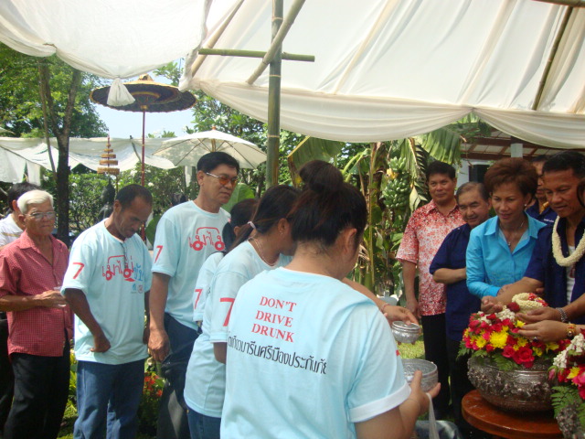 เหยื่อเมาแล้วขับ จ.สุโขทัย เข้ารดน้ำขอพร ฯ นายสมศักดิ์ เทพสุทิน อดีตรัฐมนตรีฯ เมื่อวันที่ 13 เมษายน 2555 ที่ผ่านมา