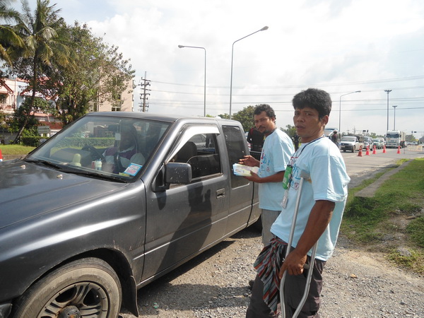 สมาชิกเครือข่ายเหยื่อเมาแล้วขับ ในมูลนิธิเมาไม่ขับ จ.นครศรีธรรมราช รณรงค์เมาไม่ขับ ปีใหม่ตายเป็นศูนย์ แจกสื่อสติ๊กเกอร์ แผ่นพับ ให้ประชาชน จุดตรวจแยกเบญจมฯ เมื่อวันที่ 2 มกราคม พ.ศ.2556 ที่ผ่านมา