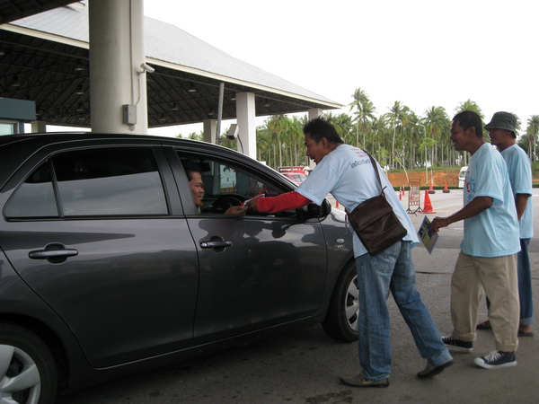 สมาชิกเครือข่ายเหยื่อเมาแล้วขับ ในมูลนิธฺิเมาไม่ขับ จ.ภูเก็ต ออกรณรงค์เมาไม่ขับ ปีใหม่ตายเป็นศูนย์ 2556 แจกสื่อ สติ๊กเกอร์ แผ่นพับ ให้ผู้ใช้รถใช้ถนน วันที่ 3 มกราคม 2556 ณ ด่านตรวจภูเก็ต
