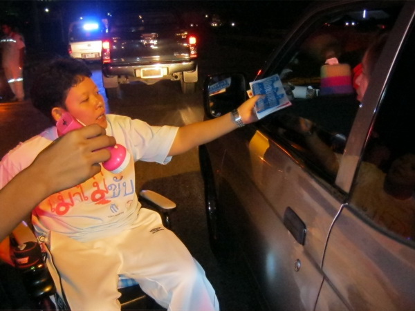 สมาชิกเครือข่ายเหยื่อเมาแล้วขับ ในมูลนิธิเมาไม่ขับ กรุงเทพมหานคร รณรงค์เมาไม่ขับ แจกสื่อ แผ่นพับให้ผู้ใช้รถใช้ถนน จุดตรวจ สน.ลำผักชี เมื่อวันที่ 2 มกราคม พ.ศ.2556 ที่ผ่านมา