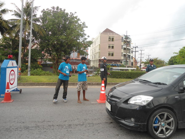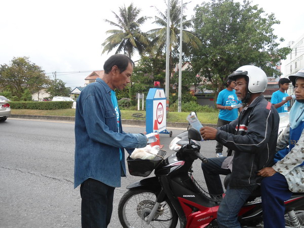 สมาชิกเครื่อข่ายเหยื่อเมาแล้วขับจังหวัดนครศรีธรรมราช รณรงค์สงกรานต์ปลอดภัยตายเป็นศูนย์ แจกสติ๊กเกอร์แผ่นพับให้ผู้ใช้รถใช้ถนน ที่จุดตรวจเบญจมฯ เมื่อวันที่ 12 เมษายน 2556 ที่ผ่านมา