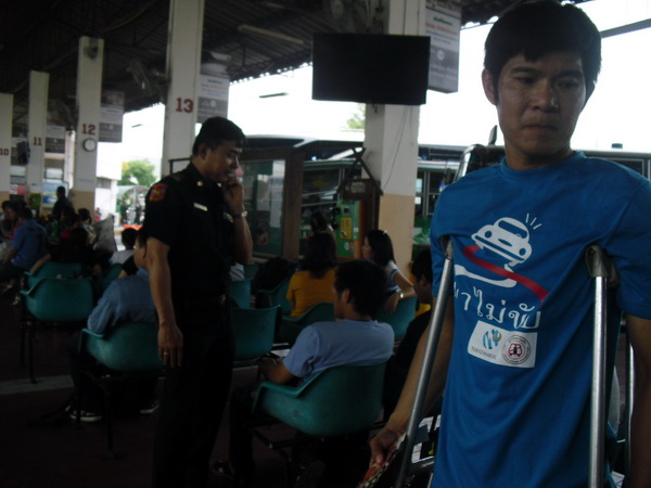 สมาชิกเครือข่ายเหยื่อเมาแล้วขับ ในมูลนิธิเมาไม่ขับ จ.ลำปาง รณรงค์สงกรานต์ปลอดภัยตายเป็นศูนย์ สถานีขนส่งจังหวัดลำปาง เมื่อวันที่ 12 เมษายน พ.ศ.2556