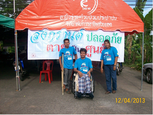 สมาชิกเครือข่ายเหยื่อเมาแล้วขับ จ.ตรัง รณรงค์เมาไม่ขับ แจกสื่อ สติ๊กเกอร์ แผ่นพับ ให้ประชาชน จุดตรวจห้วยยอด เมื่อวันที่ 12 เมษายน พ.ศ.2556 ที่ผ่านมา