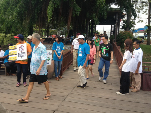 สมาชิกเครือข่ายเหยื่อเมาแล้วขับ จ.ระยอง รณรงค์สงกรานต์ปลอดภัย ตายเป็นศูนย์ แจกสื่อ สติ๊กเกอร์ แผ่นพับ ให้ประชาชน ตลาดน้ำเกาะกลอย เมื่อวันที่ 12-13 เมษายน พ.ศ.2556