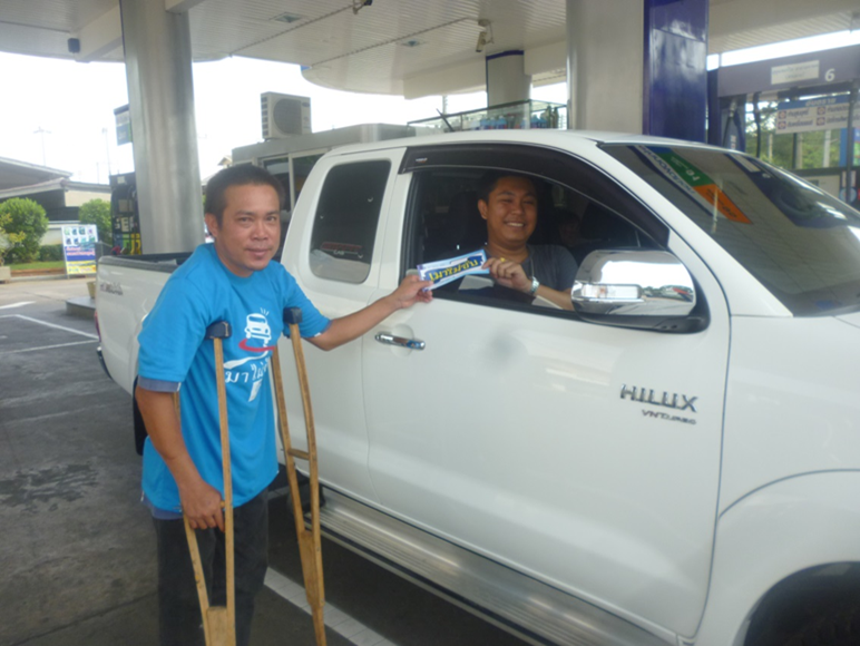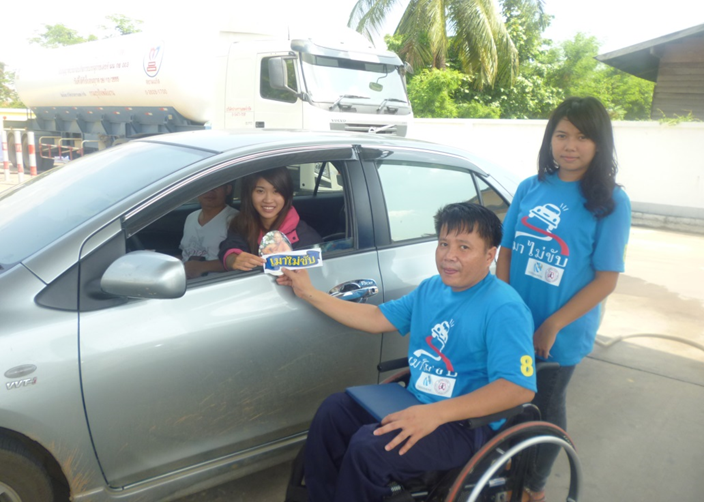 สมาชิกเครือข่ายเหยื่อเมาแล้วขับ จ.น่าน รณรงค์เมาไม่ขับ แจกสื่อ สติ๊กเกอร์ แผ่นพับ ให้ประชาชน ปั้มน้ำมัน เมื่อวันที่ 16 มิถุนายน พ.ศ.2556 ที่ผ่านมา