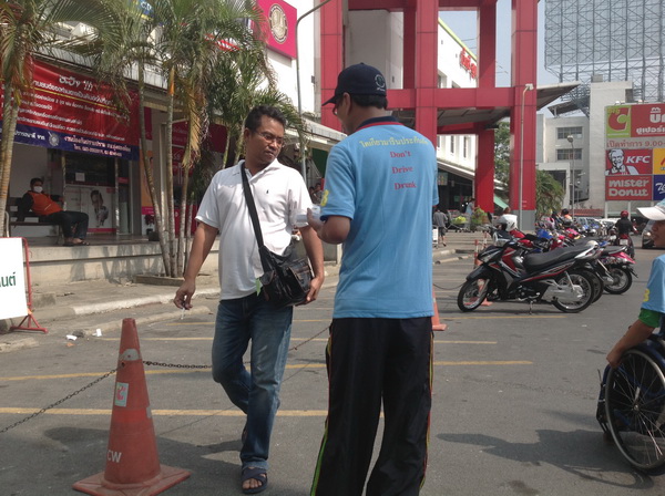 สมาชิกเครือข่ายเหยื่อเมาแล้วขับ จ.นนทบุรี รณรงค์เมาไม่ขับ ปีใหม่ตายเป็นศูนย์ แจกสื่อ สติ๊กเกอร์ แผ่นพับ ให้ประชาชน บริเวณหน้า BIG C เมื่อวันที่ 30 ธันวาคม พ.ศ.2556 ที่ผ่านมา