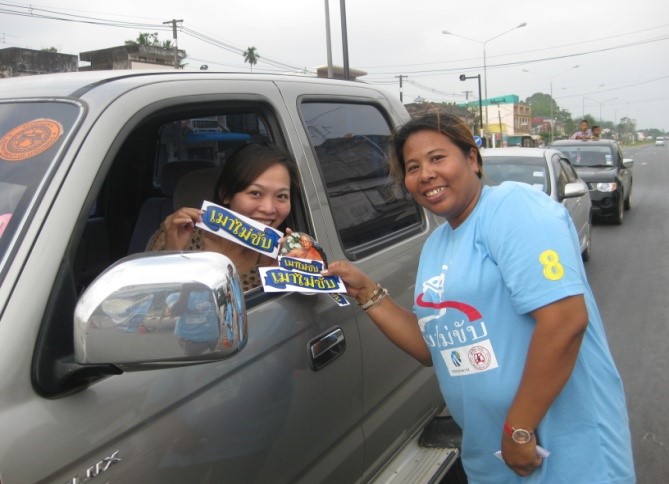 สมาชิกเเครือข่ายเหยื่อเมาแล้วขับจังหวัดตรัง พร้อมด้วยสมาคมคนพิการจังหวัดตรัง ร่วมกับ สภอ.ห้วยยอด ปฏิบัติหน้าที่ตั้งด่านตรวจ ณ. ที่ป้อมสายตรวจ 4 แยกอันดามัน (ห้วยยอด) เวลา ๐๙.๐๐ – ๑๒.๐๐ น. และหน้าวัดนาวง เทศบาลตำบลนาวง เวลา ๑๕.๐๐ – ๑๗.๐๐ น. ภายใต้การนำโดยท่านรอง ผู้กำกับ ปรีดี นาคช่วย และคณะ ร่วมด้วย มูลนิธิกู้ภัยสยามร่วมใจปู่อินทร์ วิทยาลัยการอาชีพห้วยยอด อปพร. ในเขตพื้นที่ เจ้าหน้าที่ รพ. ห้วยยอด และบริษัทตั้งใจยนตการ จำกัด เมื่อวันที่ 30 ธันวาคม พ.ศ.2556 ที่ผ่านมา