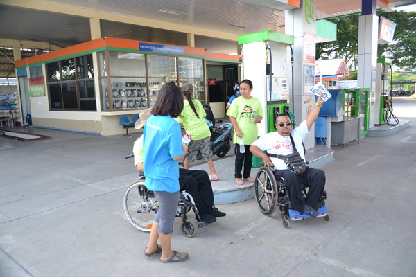สมาชิกเครือข่ายเหยื่อเมาแล้วขับ จ.ชลบุรี รณรงค์เมาไม่ขับ สงกรานต์ปลอดภัย ตายเป็นศูนย์ แจกสื่อ สติ๊กเกอร์แผ่นพับ ให้ประชาชน ปั้มน้ำมัน บางจาก. สัตหีบ เมื่อวันที่ 15 เมษายน พ.ศ.2557 ที่ผ่านมา