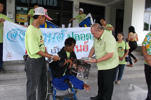 สมาชิกเครือข่ายเหยื่อเมาแล้วขับ จังหวัดปราจีนบุรี เข้าพบ นายสมฤกษ์ บัวใหญ่ รองผู้ว่าราชการจังหวัดปราจีนบุรี ขอพรและร่วมรณรงค์สงกรานต์ปลอดภัย ตายเป็นศูนย์ เมื่อวันที่ 10 เมษายน พ.ศ.2557 ณ ศาลกลางจังหวัด