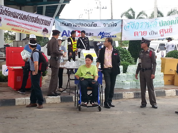 สมาชิกเครือข่ายเหยื่อเมาแล้วขับ กรุงเทพมหานคร รณรงค์เมาไม่ขับ สงกรานต์ปลอดภัย ตายเป็นศูนย์ แจกสื่อ สติ๊กเกอร์แผ่นพับ ให้ประชาชน จุดบริการประชาชน สน.ลำผักชี เมื่อวันที่ 11 เมษายน พ.ศ.2557 ที่ผ่านมา