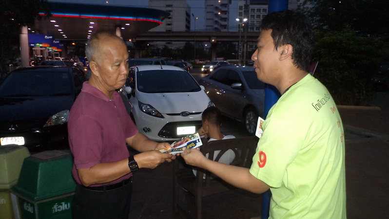 สมาชิกเครือข่ายเหยื่อเมาแล้วขับ กรุงเทพมหานคร รณรงค์เมาไม่ขับ สงกรานต์ปลอดภัย ตายเป็นศูนย์ แจกสื่อ สติ๊กเกอร์แผ่นพับ ให้ประชาชน สถานีบริการปั้มน้ำมัน ปตท. เมื่อวันที่ 17 เมษายน พ.ศ.2557 ที่ผ่านมา