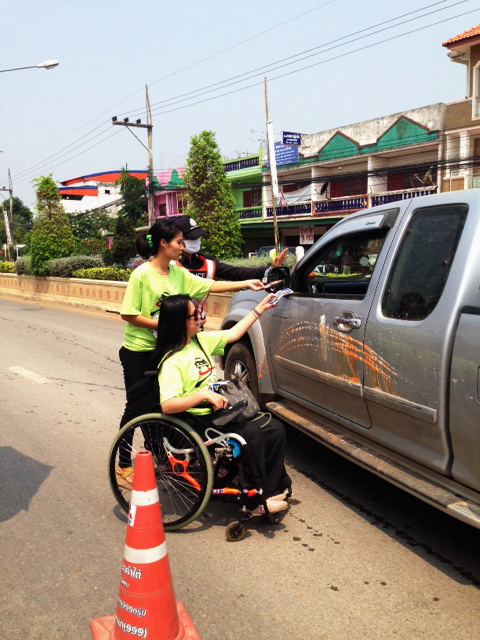 สมาชิกเครือข่ายเหยื่อเมาแล้วขับ จังหวัดนนทบุรี รณรงค์เมาไม่ขับ สงกรานต์ปลอดภัย ตายเป็นศูนย์ แจกสื่อ สติ๊กเกอร์แผ่นพับ ให้ประชาชน จุดบริการประชาชน เมืองน่าน เมื่อวันที่ 14 เมษายน พ.ศ.2557 ที่ผ่านมา