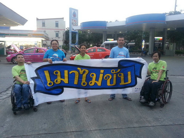 สมาชิกเครือข่ายเหยื่อเมาแล้วขับ กรุงเทพมหานคร รณรงค์เมาไม่ขับ แจกสื่อ สติ๊กเกอร์แผ่นพับ ให้ประชาชน สถานีบริการน้ำมัน ปตท. เมื่อวันที่ 13 สิงหาคม พ.ศ.2557 ที่ผ่านมา