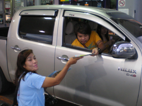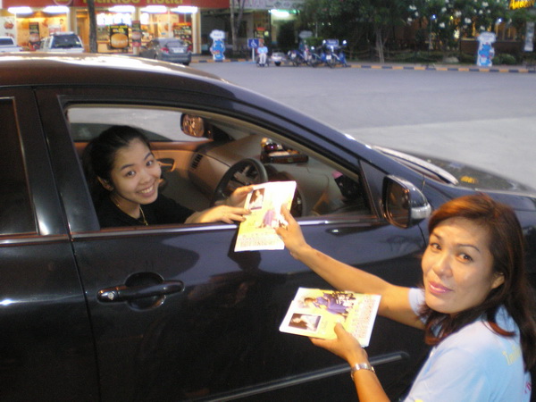 สมาชิกเครือข่ายเหยื่อเมาแล้วขับ กรุงเทพมหานคร รณรงค์เมาไม่ขับ แจกสื่อ สติ๊กเกอร์แผ่นพับ ให้ประชาชน สถานีบริการปั้มน้ำมัน ปตท. เมื่อวันที่ 10 สิงหาคม พ.ศ.2557 ที่ผ่านมา
