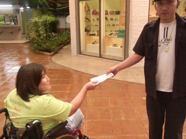 สมาชิกเครือข่ายเหยื่อเมาแล้วขับ กรุงเทพมหานคร รณรงค์เมาไม่ขับ แจกสื่อ สติ๊กเกอร์แผ่นพับ ให้ประชาชน ปั้มน้ำมัน ปตท. วิภาวดี เมื่อวันที่ ุ6 กันยายน พ.ศ.2557 ที่ผ่านมา
