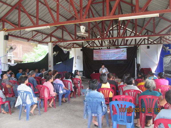 สมาชิกเครือข่ายเหยื่อเมาแล้วขับ จ.ลำปาง บรรยายถ่ายทอดประสบการณ์ความสุญเสียจากอุบัติเหตุจราจร ในโครงการเพื่อสติ ละ เลิก เครื่องดื่มแอลกอฮอล์ อ.เสริมงาม ให้ชาวบ้านหมู่บ้านนาเอี้ยง เมื่อวันที่ 17 สิงหาคม พ.ศ.2557 ที่ผ่านมา
