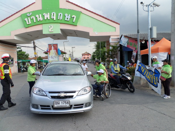 สมาชิกเครือข่ายเหยื่อเมาแล้วขับ จ.ปทุมธานี รณรงค์เมาไม่ขับ แจกสื่อแผ่นพับให้ประชาชน หน้าหมู่บ้านพฤกษา 2 เมื่อวันที่ 12 สิงหาคม พ.ศ.2557 ที่ผ่านมา
