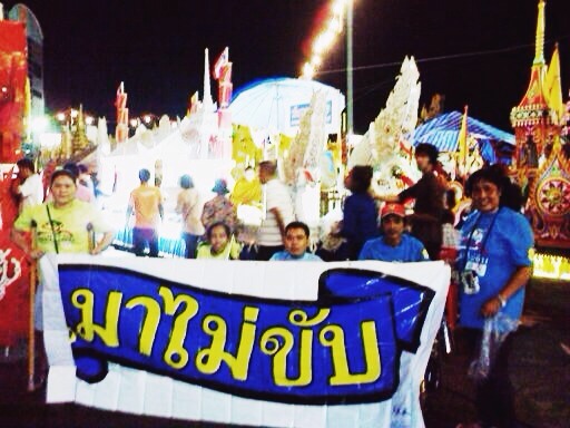 สมาชิกเครือข่ายเหยื่อเมาแล้วขับ จังหวัดสุราษฎร์ธานี รณรงค์เมาไม่ขับ แจกสื่อ สติ๊กเกอร์แผ่นพับ ให้ประชาชน งานชักพระทอดผ้าป่า แข่งเรือยาว ประจำปี 2557 เมื่อวันที่ 9 ตุลาคม 2557 ที่ผ่านมา