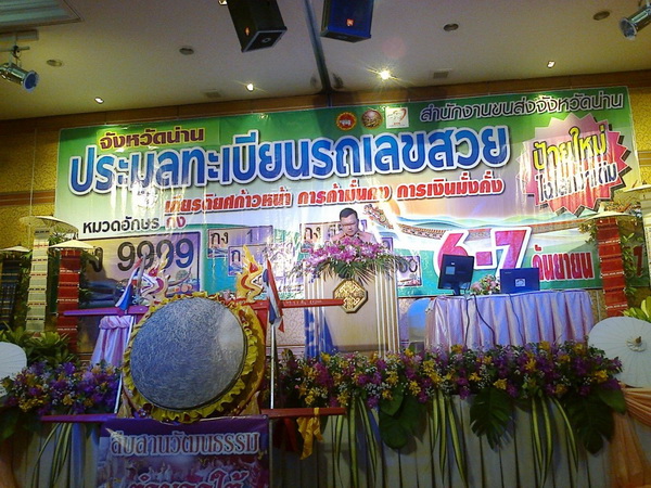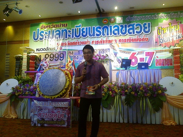สำนักงานขนส่งจังหวัดน่านประมูลเลขทะเบียนรถเลขสวย มอบกายอุปกรณ์ให้คนพิการเมืองน่าน เมื่อวันที่ 6-7 กันยายน พ.ศ.2557 ที่ผ่านมา
