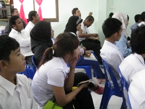 สมาชิกเครือข่ายเหยื่อเมาแล้วขับ จ.ภูเก็ต บรรยายถ่ายทอดประสบการณ์ให้นิสิต นักศึกษา เวทีการสัมมนาการเสริมสร้างความรู้- ทักษะ เพื่อความปลอดภันทางถนน ห้องประชุมอเนกประสงค์ บ้านหาดสุรินทร์ เมื่อวันที่ 17 กันยายน พ.ศ.2557 ที่ผ่านมา