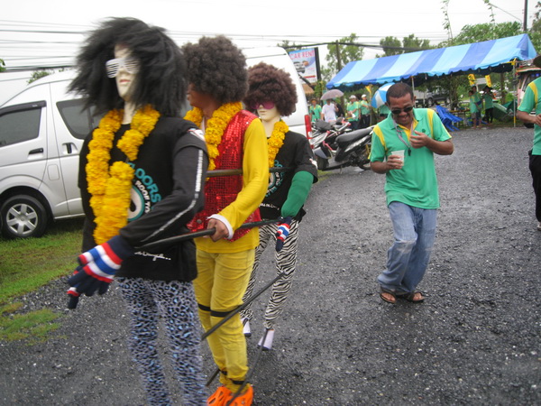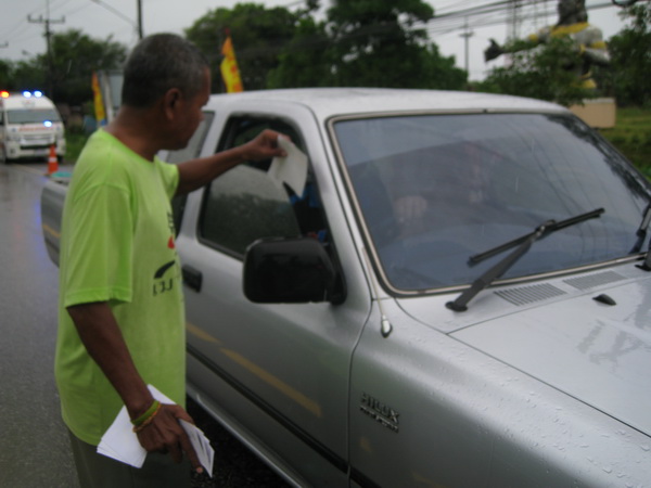 สมาชิกเครือข่ายเหยื่อเมาแล้วขับ จ.ภูเก็ต รณรงค์เมาไม่ขับ งานประเพณีแห่จาดเดือนสิบวัดเทพกระษัตรี อ.ถลาง แจกสื่อ สติ๊กเกอร์ แผ่นพับให้ประชาชน นักท่องเที่ยว เมื่อวันที่ 16 กันยายน พ.ศ.2557 ที่ผ่านมา