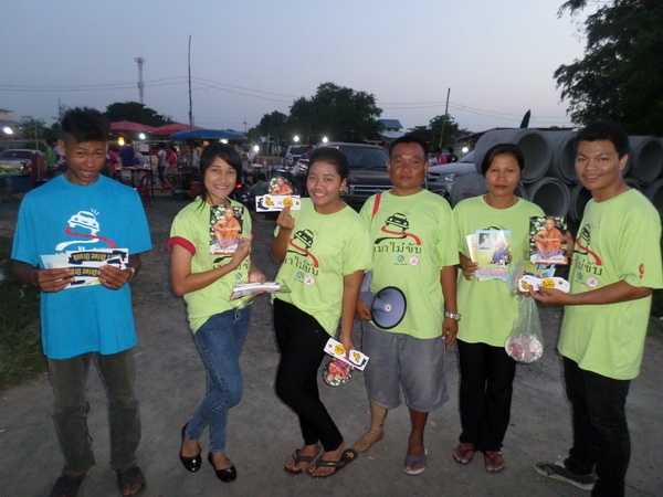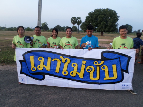 สมาชิกเครือข่ายเหยื่อเมาแล้วขับ จังหวัดอุบลราชธานี รณรงค์เมาไม่ขับ แจกสื่อ สติ๊กเกอร์ แผ่นพับ ให้ประชาชน บริเวณตลาดนัด เมื่อวันที่ 17 ตุลาคม พ.ศ.2557 ที่ผ่านมา