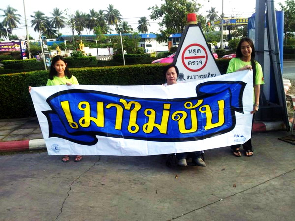 สมาชิกเครือข่ายเหยื่อเมาแล้วขับ กรุงเทพมหานคร รณรงค์เมาไม่ขับ ปีใหม่ตายเป็นศูนย์ ร่วมแจกสื่อ สติ๊กเกอร์ แผ่นพับ ให้ประชาชน บริเวณสถานีบริการปั้มน้ำมัน ปตท. เมื่อวันที่ 4 มกราคม พ.ศ.2558 ที่ผ่านมา