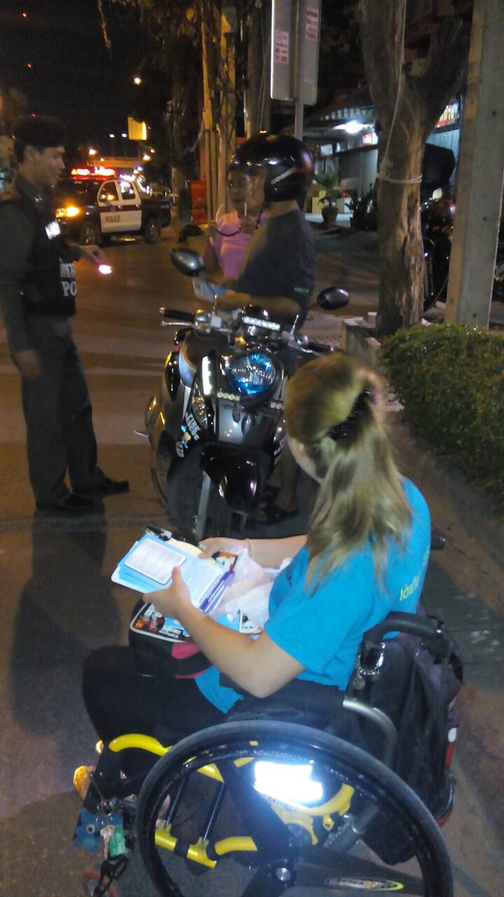 สมาชิกเครือข่ายเหยื่อเมาแล้วขับ กรุงเทพมหานคร รณรงค์เมาไม่ขับ แจกสื่อ สติ๊กเกอร์แผ่นพับ ให้ประชาชน บริเวณ จุดตรวจ สน.บางโพ เมื่อวันที่ 21 มิถุนายน พ.ศ.2558 ที่ผ่านมา