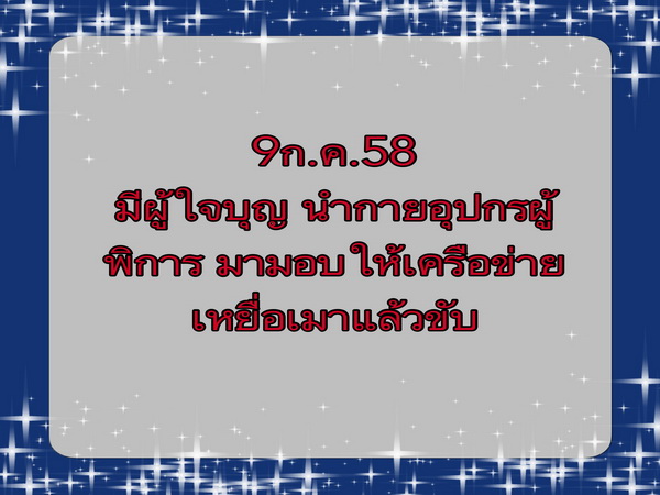 สมาชิกเครือข่ายเหยื่อเมาแล้วขับ จ.สุราษฎร์ธานี รับมอบกายอุปกรณ์ จากผู้ใจบุญ เมื่อวันที่ 9 กรกฎาคม พ.ศ.2558 ที่ผ่านมา