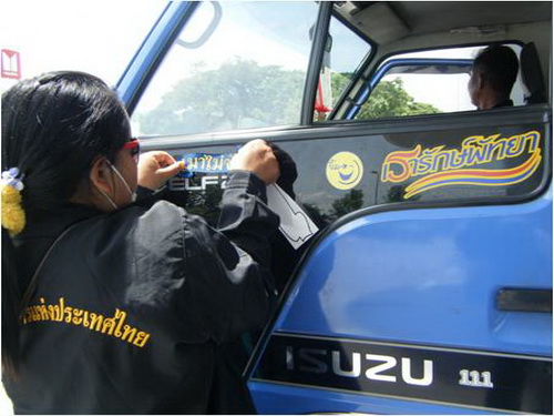 สมาชิกศูนย์ประสานงานเครือข่ายเหยื่อเมาแล้วขับ ในมูลนิธิเมาไม่ขับ จ.สุรินทร์ รณรงค์ "เมาไม่ขับ" แจกสื่อ สติ๊กเกอร์ แผ่นพับ ให้กับประชาชน ณ ปั้มน้ำมัน ปตท. อ.ปราสาท ในวันที่ 11 สิงหาคม 2552 ที่ผ่านมา