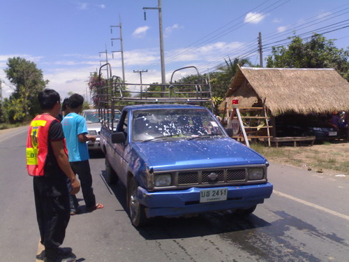 สมาชิกเครือข่ายเหยื่อเมาแล้วขับ จ.กำแพงเพชร รณรงค์ “สงกรานต์นี้ ปลอดเหล้า ปลอดภัย” แจกสื่อ สติ๊กเกอร์ ให้กับผู้ใช้รถใช้ถนน ณ ด่าน อบต.วังบัว ในวันที่ 13 เมษายน 2552 ที่ผ่านมา