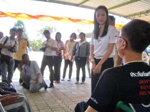 คุณธัญญา ตั้งกิติกุล ประธานเครือข่ายเหยื่อเมาแล้วขับ จ.กาญจนบุรี ร่วมต้อนรับ นางนวลพรรณ ล่ำซำ ผู้ช่วยรัฐมนตรีว่าการกระทรวงการพัฒนาสังคมและความมั่นคงของมนุษย์ (พม.) มาดูงานที่ อบต.แสนตอ เมื่อวันที่ 24 มีนาคม 2552 ที่ผ่านมา