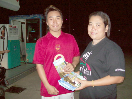 สมาชิกเครือข่ายเหยื่อเมาแล้วขับ ในมูลนิธิเมาไม่ขับ จ.นครสวรรค์ รณรงค์ "โครงการลดเหล้าเมาไม่ขับเทศกาลออกพรรษา“ แจกสื่อ สติ๊กเกอร์ แผ่นพับ ให้กับผู้ใช้รถใช้ถนน ณ ปั้มน้ำมัน อำเภอตากฟ้า ในวันที่ 13 ตุลาคม 2551 ที่ผ่านมา