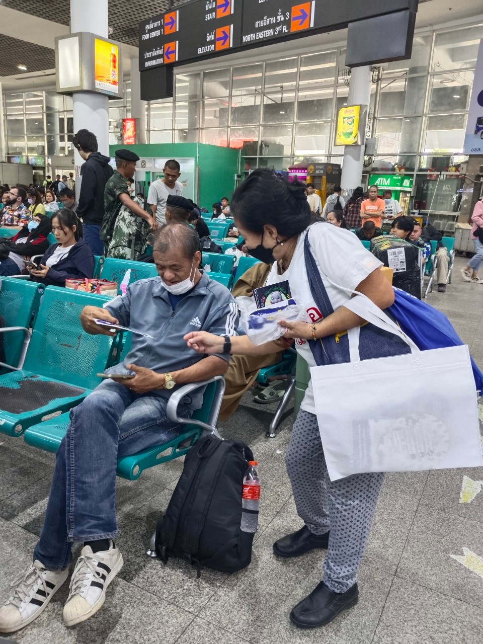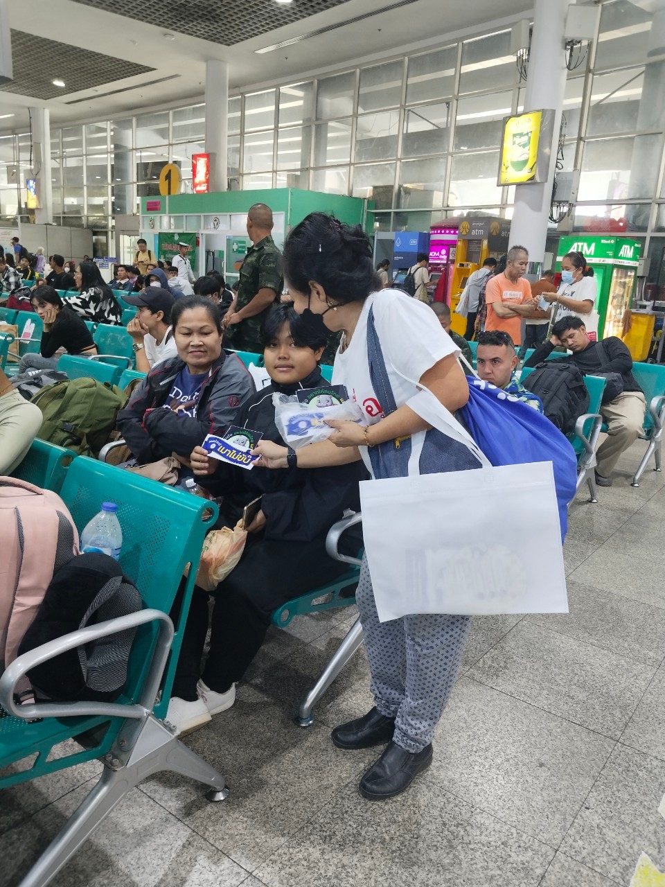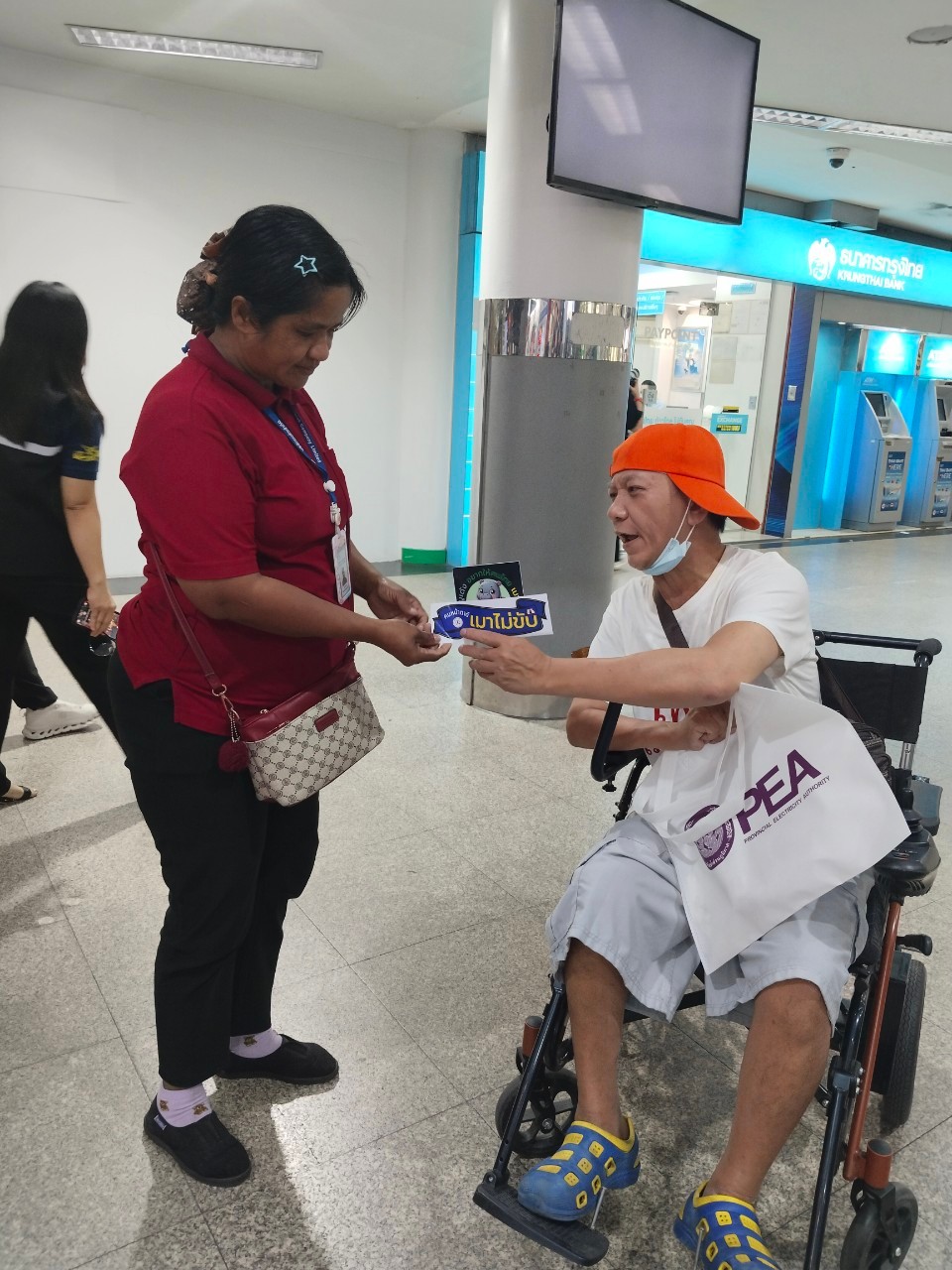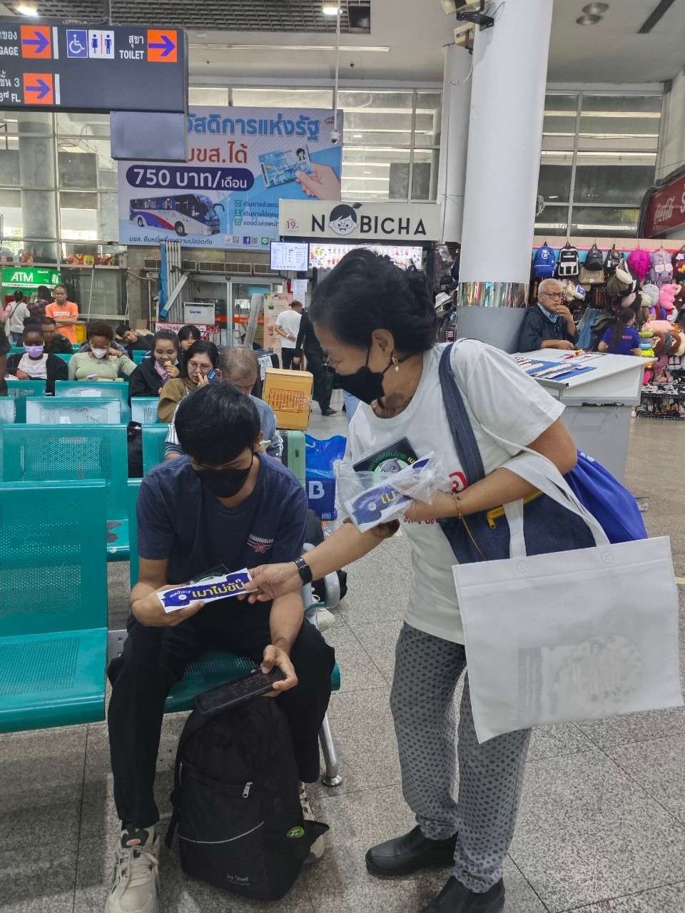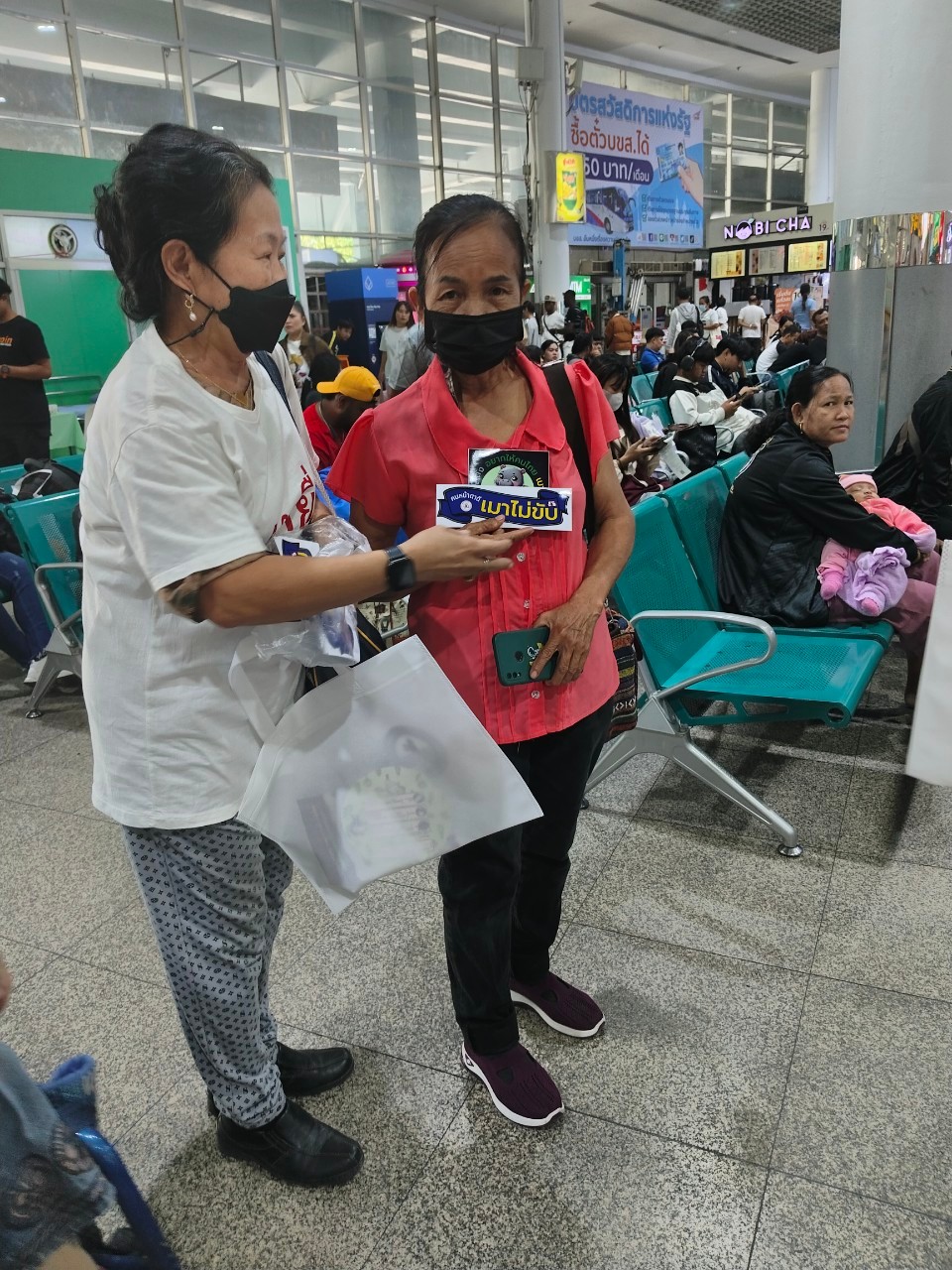 นางสาวอี๊ด วรรณโส แกนนำเครือข่ายเหยื่อเมาลัวขับ กรุงเทพมหานคร รณรงค์ปีใหม่ปลอดภัย ร่วมใจลดอุบัติเหตุทางถนน โครงการรณรงค์ส่งเสริมธรรมาภิบาลด้านการจราจร แจกสื่อ สติ๊กเกอร์ แผ่นพับ ให้ประชาชน บริเวณ สถานีขนส่งผู้โดยสารหมอชิต 2 แขวงสวนจตุจักร เวลา 15.00 – 18.00 น. เมื่อวันที่ 27 ธันวาคม พ.ศ.2567 ที่ผ่านมา