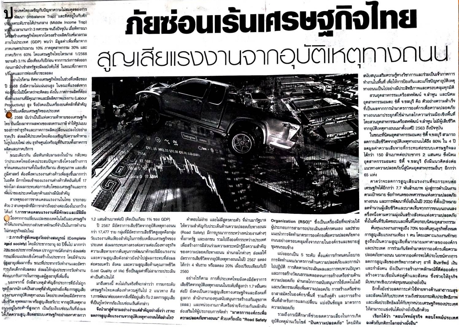 ภัยซ่อนเร้นเศรษกิจไทยสูญเสียแรงงานจากอุบัติเหตุทางถนน (มติชน น5)