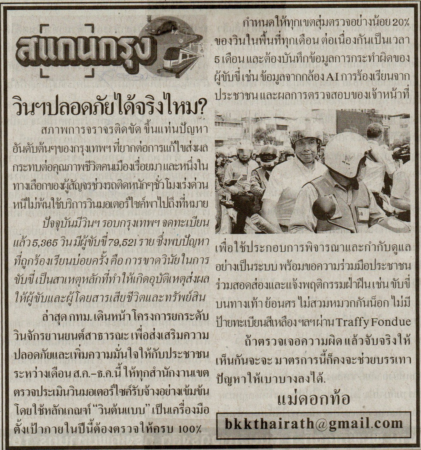 วินฯปลอดภัยได้จริงไหม (ไทยรัฐ น15)